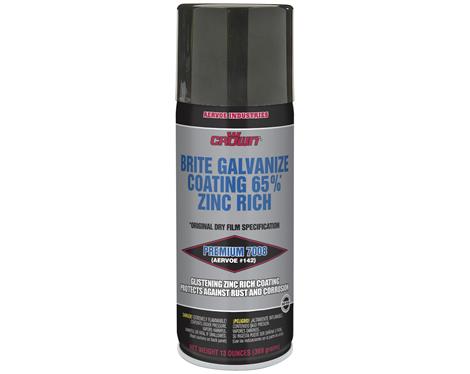 - Description: A glistening coating with 65% pure zinc in dry film, Stops rust and corrosion on any iron or steel surface for protection equal to or better than hot-dipped galvanizing, Restores galvanized surfaces to the bright look of hot-dipped galvanizing, Meets performance requirements of ASTM A-780, Good film integrity after 500 hours salt spray (ASTM B-117)