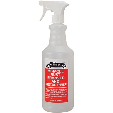Bill Hirsch Rust Remover/Metal Prep is the very best product on the market for removing rust. Not only will the product safely and quickly remove rust, but it will leave a gray phosphate coating on the metal to provide an excellent base for painting and welding conductivity. Can be sprayed or applied to areas normally impossible to remove rust from before. Etches aluminum, brass, copper and chrome plate to prep for painting. Use when painting on Aluminium, stainless steel, galvanised metal, new, smooth, or even polished metal surfaces, as these metals shoul all be etched before painting. It will even remove nickel plate without harming painted surfaces. Non-flammable, non toxic, biodegradable. One step process for spray, brush or dip application.