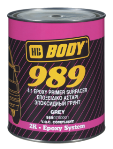 2K high performance Epoxy Primer with anticorrosive properties. Excellent sealing, adhesion and filling abilities. Resistant to extreme weather conditions. Suitable for application over old paints, non sanded bare metal, aluminium, stainless steel and zinc surfaces. It cures with BODY 989 EPOXY HARDENER (# 732) @ 4:1. It can be diluted with acrylic thinner (reducer) BODY EPOXY THINNER (REDUCER) (#775) @ 20-30% and applied by a spray gun of 1,5-1,8 mm nozzle diameter.