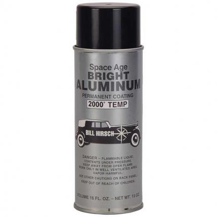 Bill Hirsch Space Age Exhaust and Manifold Coating, Aluminium this paint is rated to withstand temperatures up to 2000 degrees F. (1092°C). Brush or spray these on to new, clean, or sandblasted manifold and exhaust areas and they will restore the look to new. Easy to use, withstands virtually all weather conditions, dries fast and yields amazing results. Avaliable in Pints and Aerosols