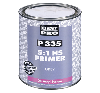 HB BODY PRO P335 is a high quality acrylic-filling sealing prime for partial and full automotive refinishes. Suitable for original or old paint work and ideal for unsanded O.E.M. (E-COAT) panels. Its versatility enables both application at normal, medium and high film thickness with intermediate sanding or “wet on wet” application. Dues to its high filling power and vertical stability, higher film thickness is possible. The fast drying and excellent levelling of this primer guarantee efficient application and fast sanding. It is cured with an isocyanate based BODY HARDENER 725 FOR PRIMERS (# 725). One of its greatest advantages is that it is ready for sanding after 2 air dry @ 23ºC (73ºF). By using HB BODY PRO A715 turbo AX (#715) hardening time is reduced even more