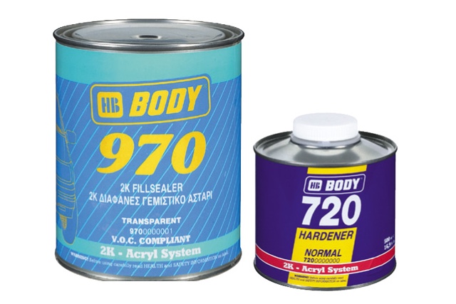 Excellent transparent acrylic 2K primer, suitable for the following applications: As a transparent adhesion promoter over non sanded areas. As a filler over treated surfaces. As a first layer (ground coat) for paints with inferior covering abilities (transparent or pigmented). No sanding required within 12 hours of application, if left over 12 hours the fillsealer must be sanded prior to any paint application. It is cured with an isocyanate based BODY HARDENER (# 722 FAST - # 720 NORMAL - #721 SLOW) @ 2:1.